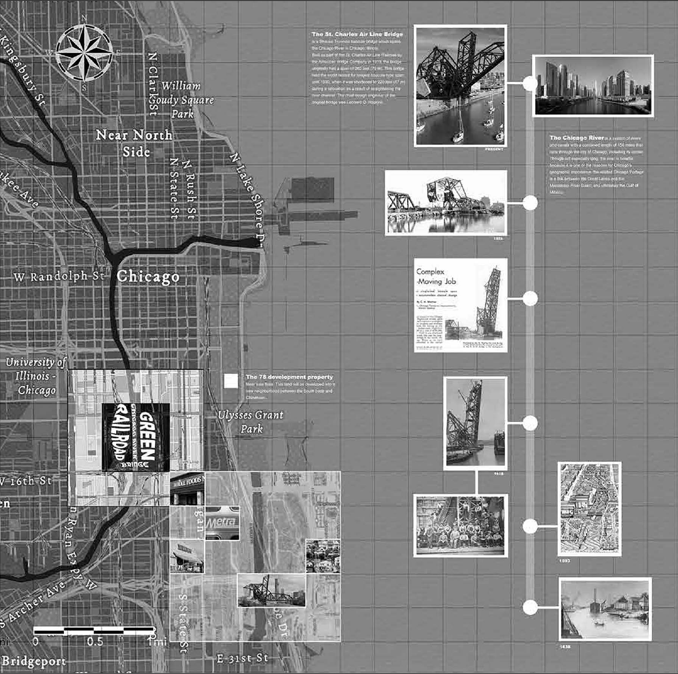 South Loop, The 62-acrelocated on a 62-acre parcel of land, south of Downtown Chicago and north of Chinatown. The area is bordered by Roosevelt Road to the north, Clark Street to the east, 16th Street to the south, and the South Branch of the Chicago River to the west.