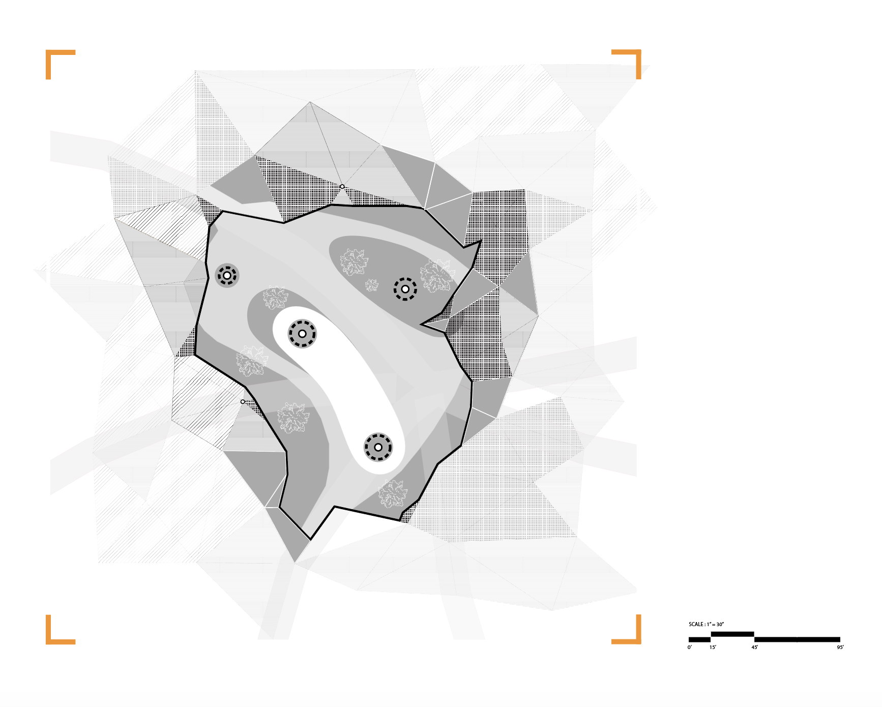 Module Design: Inspired by the shade of the trees, change with the seasons and weather. The Module set work as the action of rising and down, could “open” and “close”, provide flexible functional space over time. This module set also be able to expand with the needs.